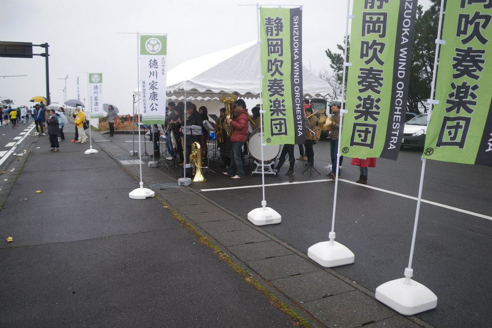 冷たい雨の降る寒いコンディションの中、静岡吹奏楽団の熱い演奏&声援でランナーを応援しました。