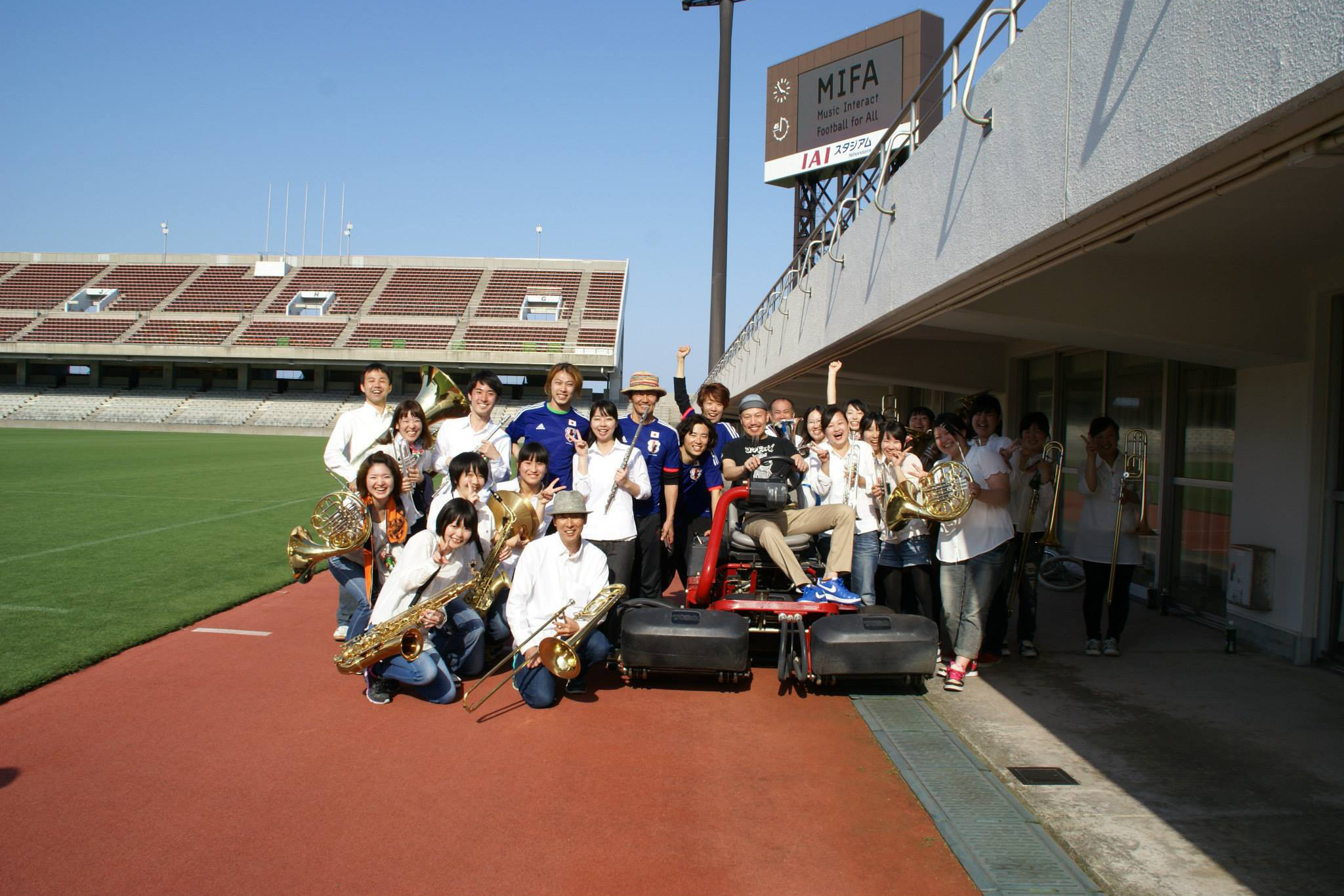 快晴の『IAIスタジアム日本平』で行われた、桜井和寿さん(Mr.Children)とGAKU-MCさんによるユニット「UKASUKA-G(ウカスカジー)」が歌うサッカー日本代表の公式応援ソング「勝利の笑みを 君と」のミュージックビデオの撮影に参加しました。