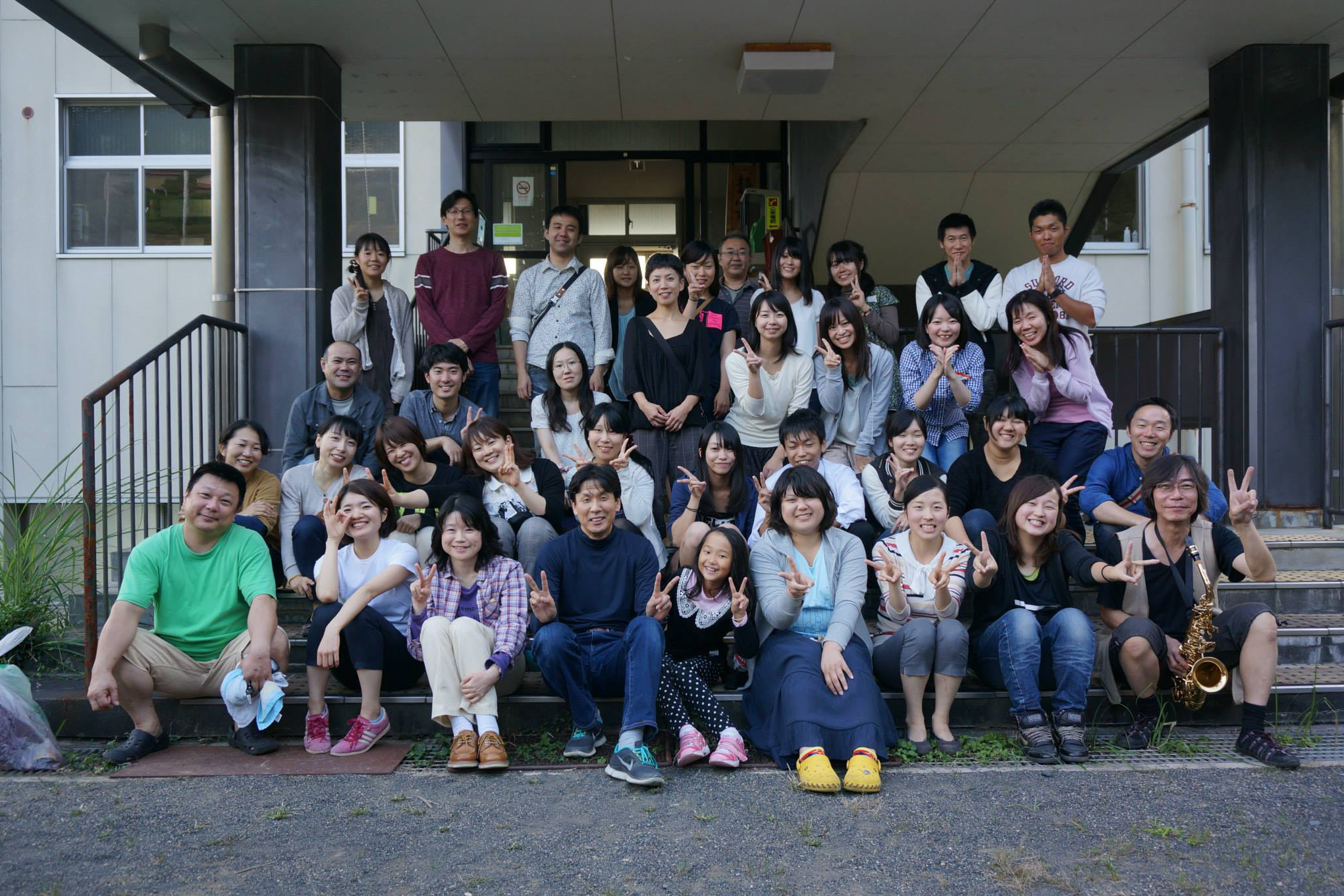 写真は、ビデオ撮影の終了後に近藤良平さん主宰のダンス集団「コンドルズ」のみなさんと。