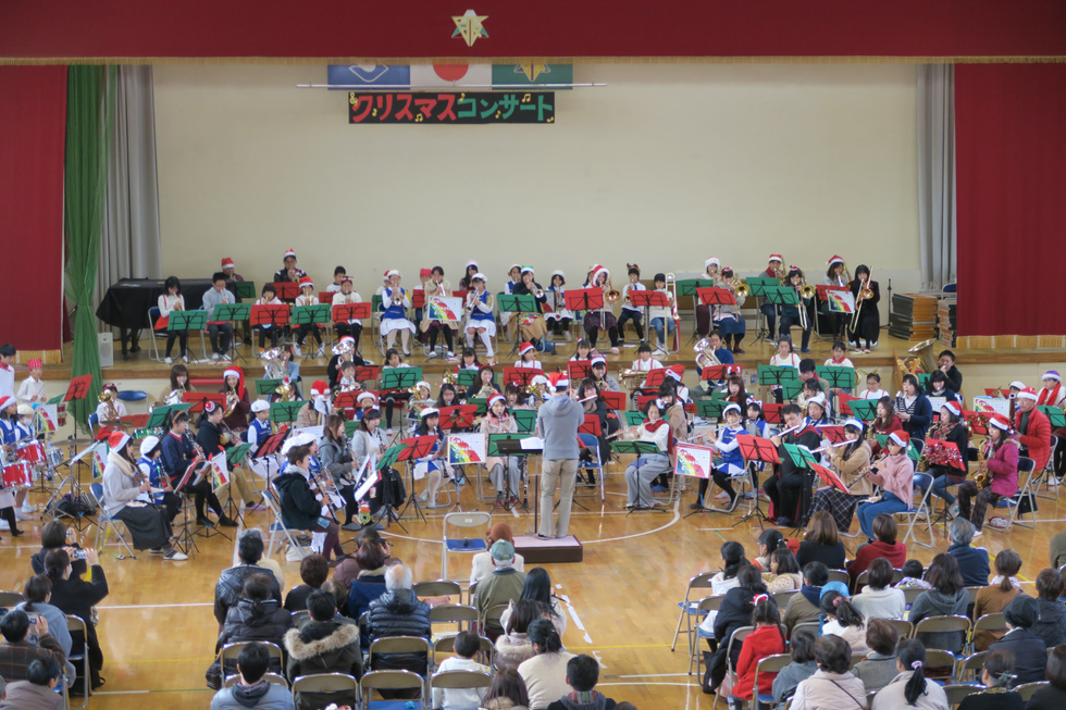 今年のクリスマスコンサートは、新通小シンフォニッククラブに末広中学校吹奏楽部も加わり、3団体合同で演奏を行いました。
