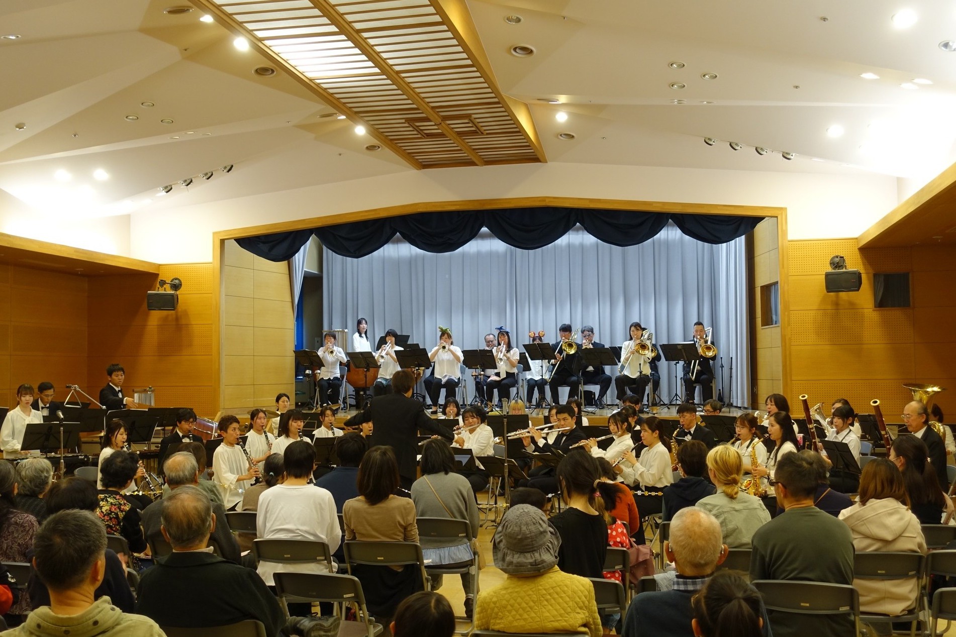 藁科生涯学習センターで、鑑賞するって楽しい!静岡吹奏楽団スプリングコンサート が開催されました。「ドレミの歌」「スーパーマリオブラザーズ」「Lets' Go クラシック」などアンコールを含めて9曲を演奏しました。アットホームな雰囲気の中、曲にのって動いたり手拍子をいただいたり、約1時間のプログラムを楽しんでいただけたかと思います。初めての2回公演で少しドキドキでしたが、嬉しいリアクションをたくさん頂き、私たちも楽しい時間を過ごすことができました。